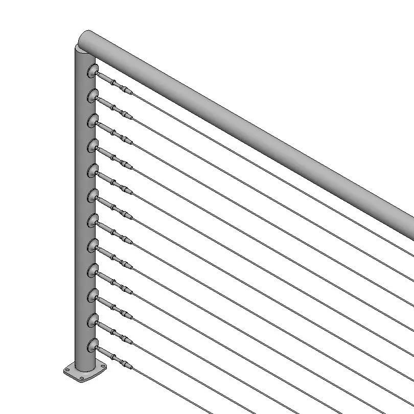 W tej konstrukcji dodano górną poręcz dla dodatkowego bezpieczeństwa i wsparcia. To dobra równowaga bezpieczeństwa i stylu, szczególnie w przypadku schodów lub miejsc o dużym natężeniu ruchu.