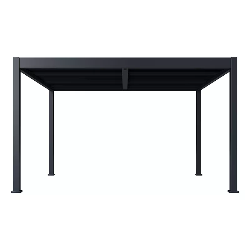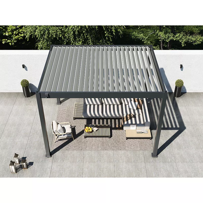Zewnętrzna pergola żaluzjowa Vionta jest wyposażona w wydajną, regulowaną konstrukcję żaluzji, która pozwala użytkownikom łatwo dostosować kąt żaluzji w zależności od warunków pogodowych i codziennych potrzeb.