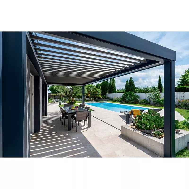 Niezależnie od tego, czy chodzi o ogrody przydomowe, tarasy, dziedzińce komercyjne, czy tereny zewnętrzne w ekskluzywnych hotelach i restauracjach, wysuwana pergola z żaluzjami Vionta zapewnia doskonały cień, deszcz i wentylację, tworząc przyjemne środowisko na zewnątrz przez cały rok