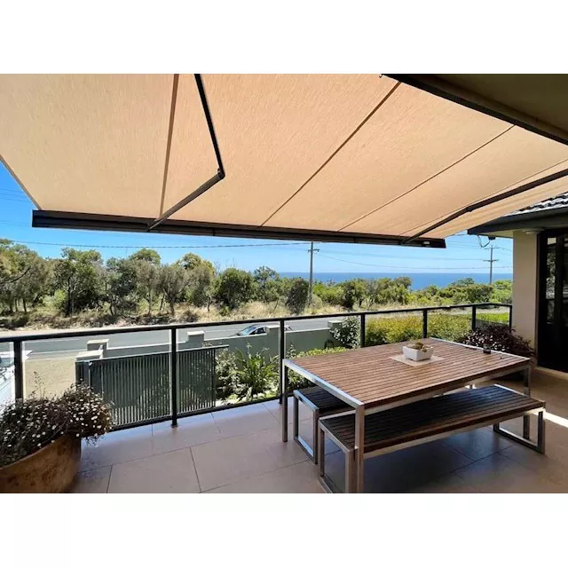 Markiza półkasetowa jest nowatorska i stylowa, wykonana z materiałów z ramy ze stopu aluminium i tkaniny PCV. Solidna aluminiowa rama sprawia, że ​​kształt jest mocny i elegancki. Zewnętrzna powłoka czaszy jest poddawana natryskiwaniu powierzchni w wysokiej temperaturze, która ma wysoką antyutlenialność i długotrwałą jasność. Łuk markizy jest elegancki i gładki. Po zamknięciu skutecznie owinie tkaninę i ramię w korpusie markizy, zapewniając, że tkanina nie ulegnie korozji przez kurz nawet wtedy, gdy nie jest używana.